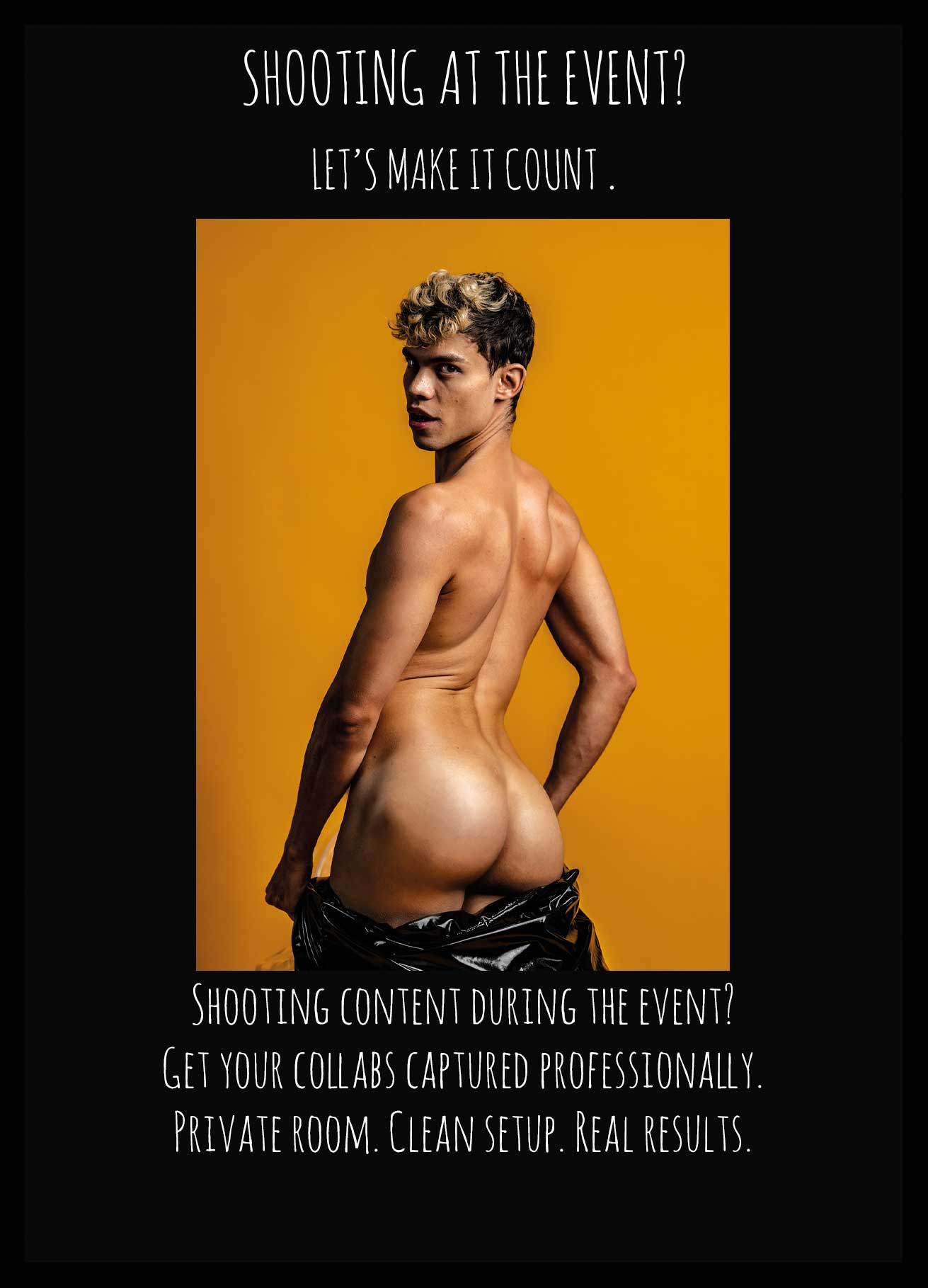 Die Shootingangebote richten sich an (Nachwuchs-)Creator, Twinks, Twunks und Gymrats von 18 – 35 Jahren, die während der Grabbys Europe neuen, hochwertigen Content produzieren möchten – authentisch, erotisch und visuell stark. Ziel ist Material, das Charakter zeigt, Fantasien bedient und gleichzeitig professionell umgesetzt ist.
